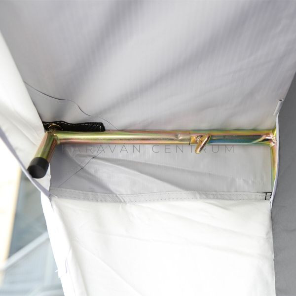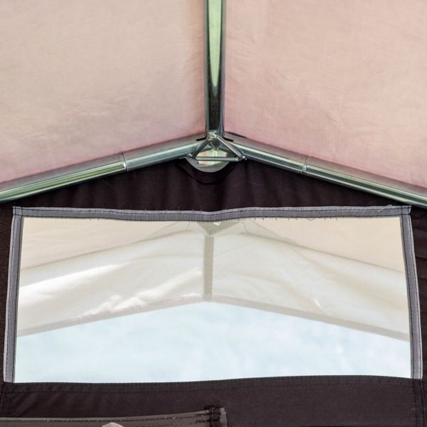 klasszikus nyeregtetős sátor szúnyoghálós, sötétíthető ablakokkal. A szintén szúnyoghálóval ellátott
