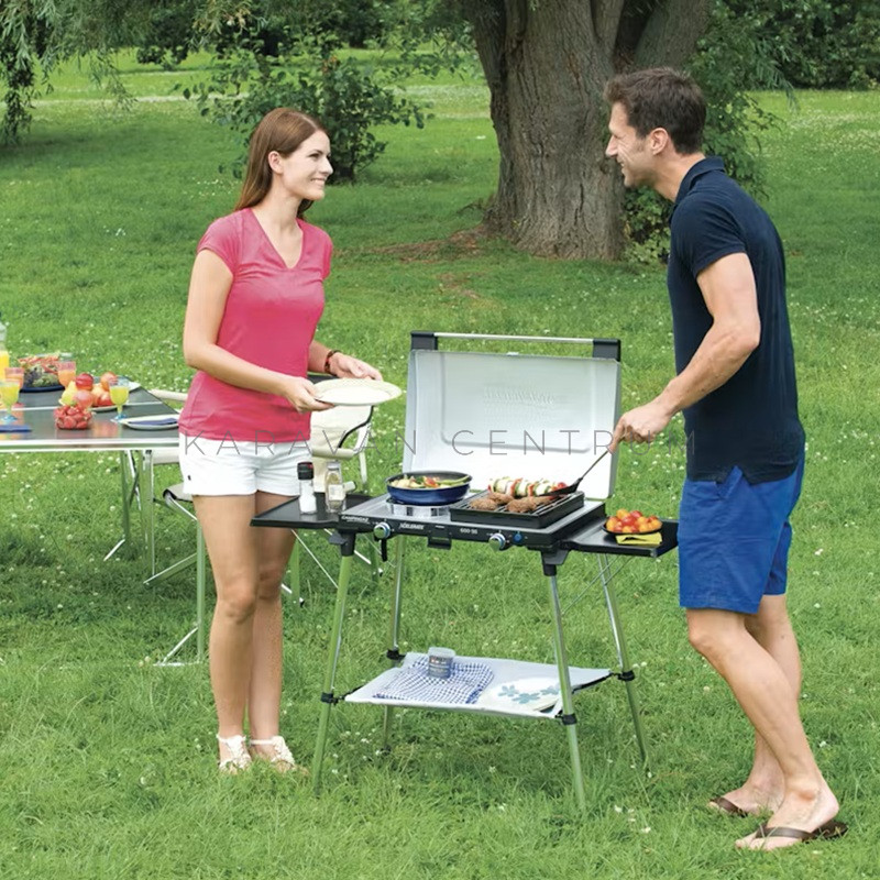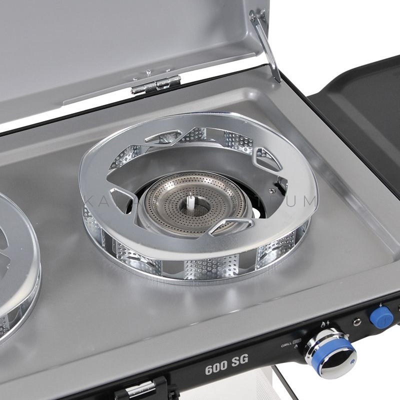 • bepattintható stabil acélfedél, mely kiegészítő szélvédelemként is szolgál a főzés során