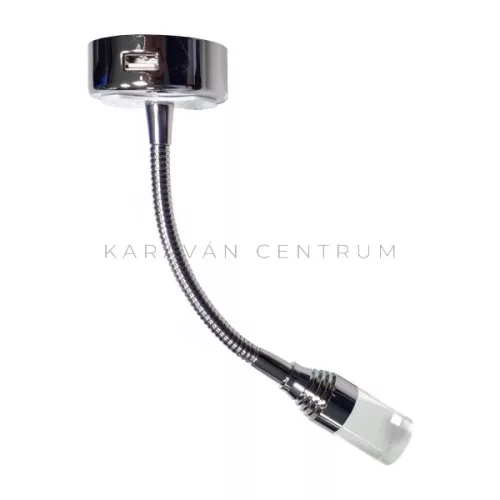 Dekoratív LED spotlámpa flexibilis karral, helyi billenőkapcsolóval, USB-A töltő csatlakozóval,