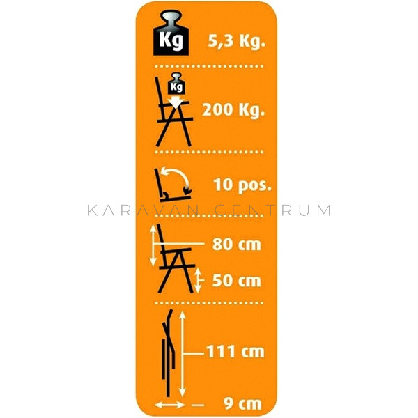 Extra széles háttámlával készült rendkívül stabil, különösen kényelmes, párnázott kempingszék.