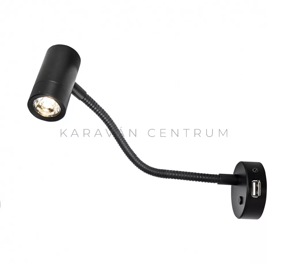 Dekoratív kis méretű LED spotlámpa flexibilis karral, helyi kapcsolóval és USB-A töltő csatlakozóval