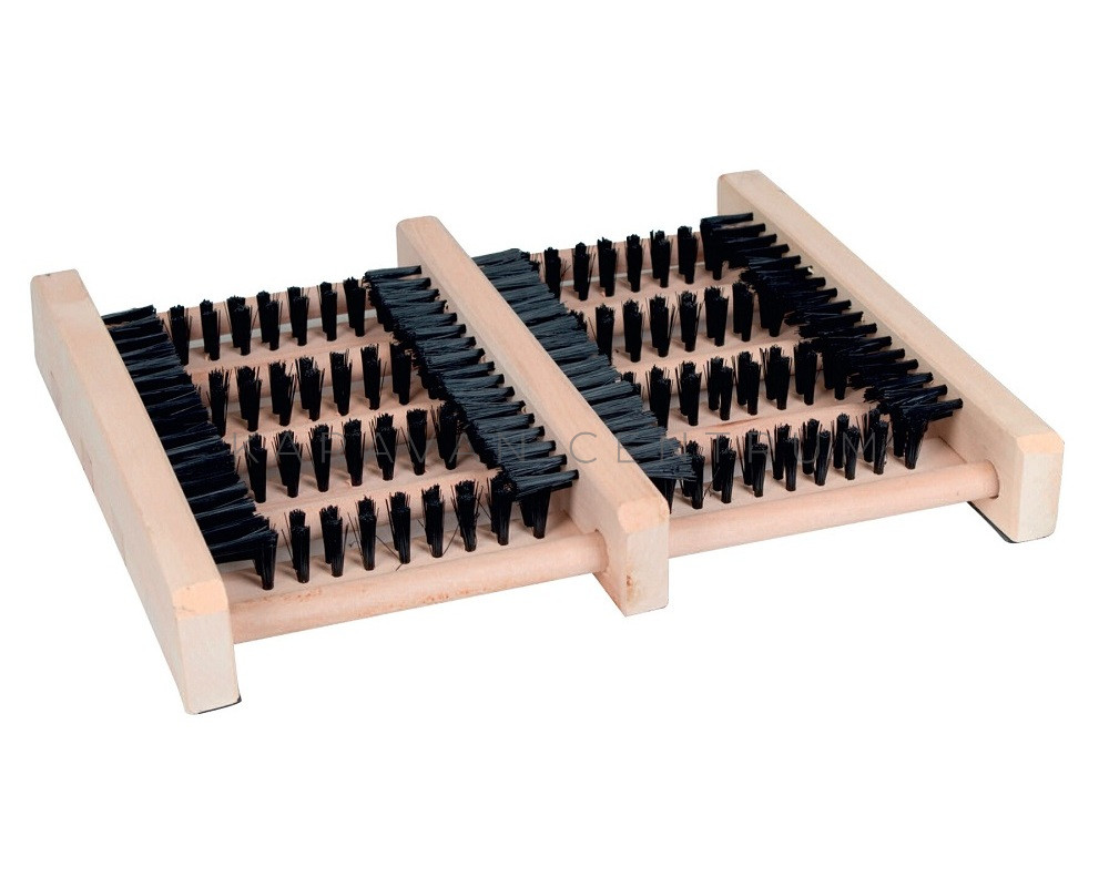 A stabil favázba állított sörték egyszerre tisztítják meg a cipőt alulról és oldalról