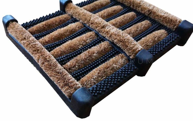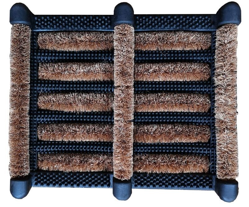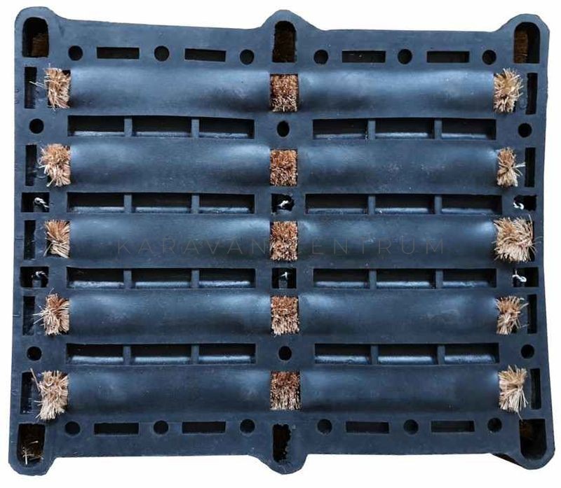 Az időjárásálló keretre szerelt lábtörlő erős rostok segítségével távolítja el a szennyeződéseket még