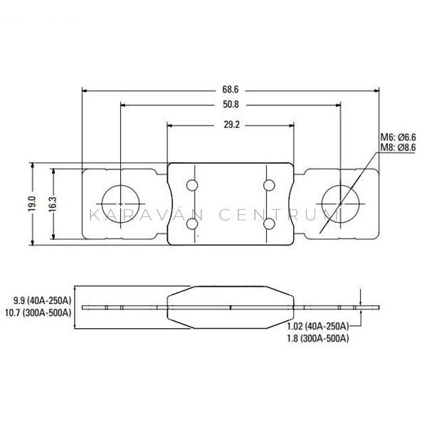 Stabil, nagy terhelésű biztosíték nagyobb fogyasztók védelmére.