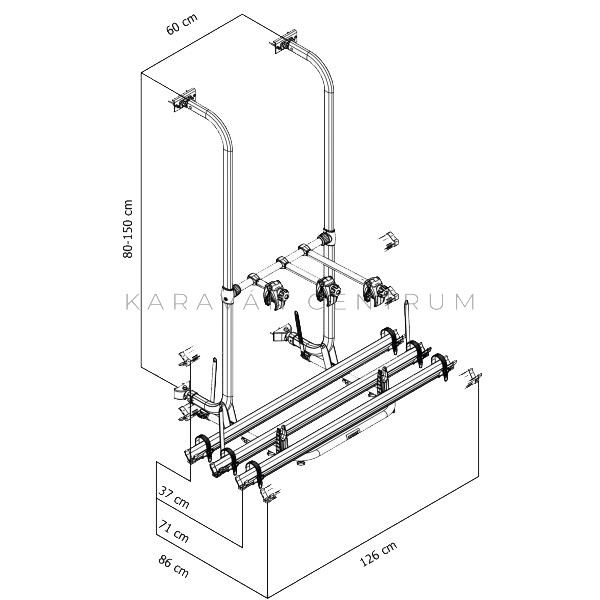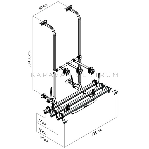 Minden Carado, Dethleffs és Sunlight lakóautó felső sínjére felszerelhető kerékpártartó.