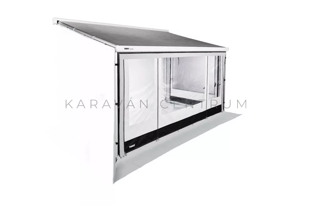 Az Thule előtetők frontblende sínjébe behúzható, teljesen feltekerhető homlokfal mindkét végén ajtó