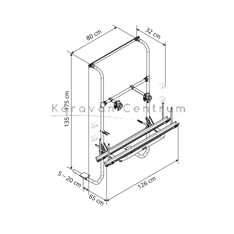 Felszerelhető: lakókocsi hátsó falára az alvázhoz rögzítve