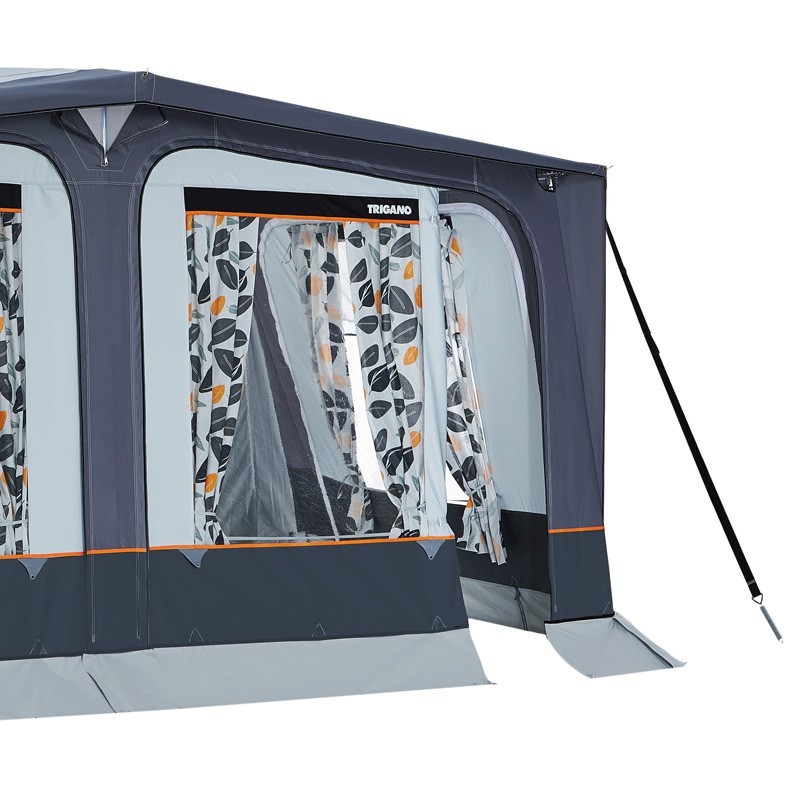 A 270 cm mély elősátor 2 részből álló homlokfala mindkét végéről cipzárral nyitható és levehető