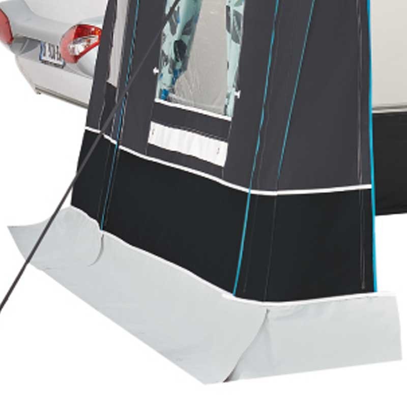 A 300 cm mély elősátor 2 részből álló homlokfala mindkét végéről cipzárral nyitható és levehető
