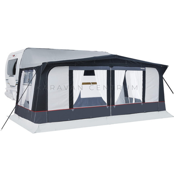 A 270 cm mély elősátor 2 részből álló homlokfala mindkét végéről cipzárral nyitható és levehető