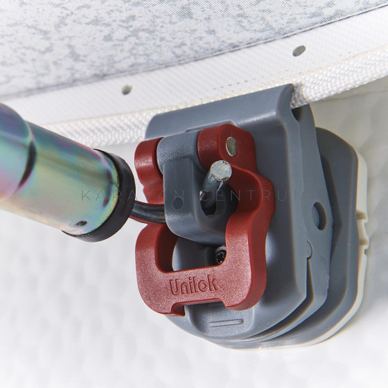 A 270 cm mély elősátor 2 részből álló homlokfala mindkét végéről cipzárral nyitható és levehető