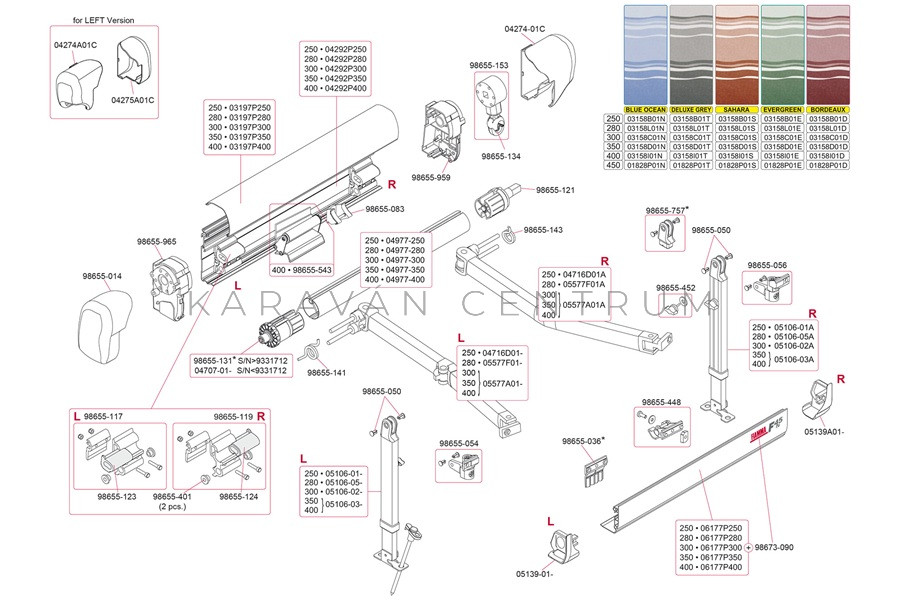 - F45S VW T5 Titanium 260-300 cm alkatrészek
