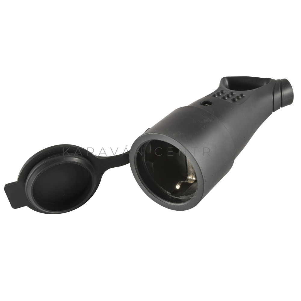 Kül- és beltérben egyaránt használható földelt aljzat 45°-os kábelvezetéssel, akasztóval.